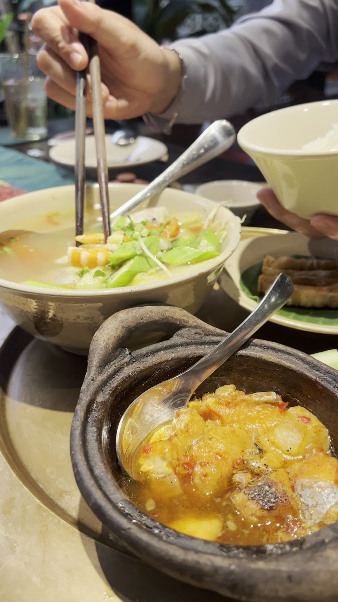 Ornate wood carvings, warm ambient lighting, and lush tropical plants create a space that’s both refined and inviting. Every detail feels intentional, from the vintage-inspired furnishings to the soft background music that perfectly complements the atmosphere. The food is equally impressive. Each dish is a harmonious balance of bold flavors and delicate presentation. A true Indochine experience that satisfies both the palate and the soul. Highly recommended